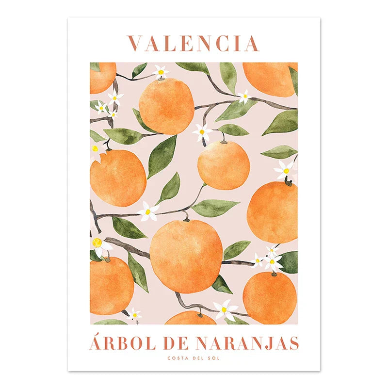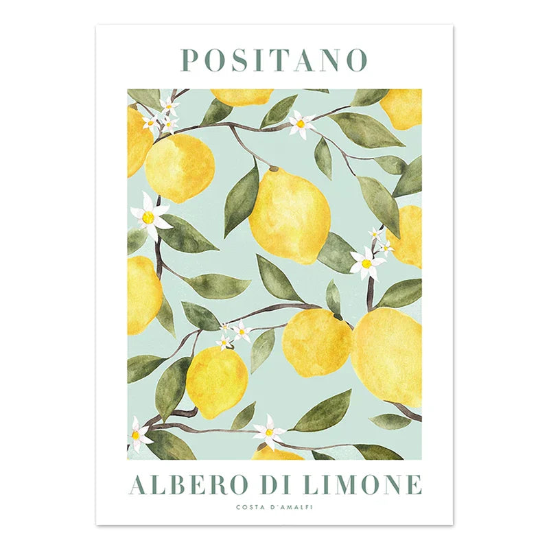Vibrant canvas prints featuring abstract designs of lemons, flowers, and oranges. A colorful addition to your living room or office decor.